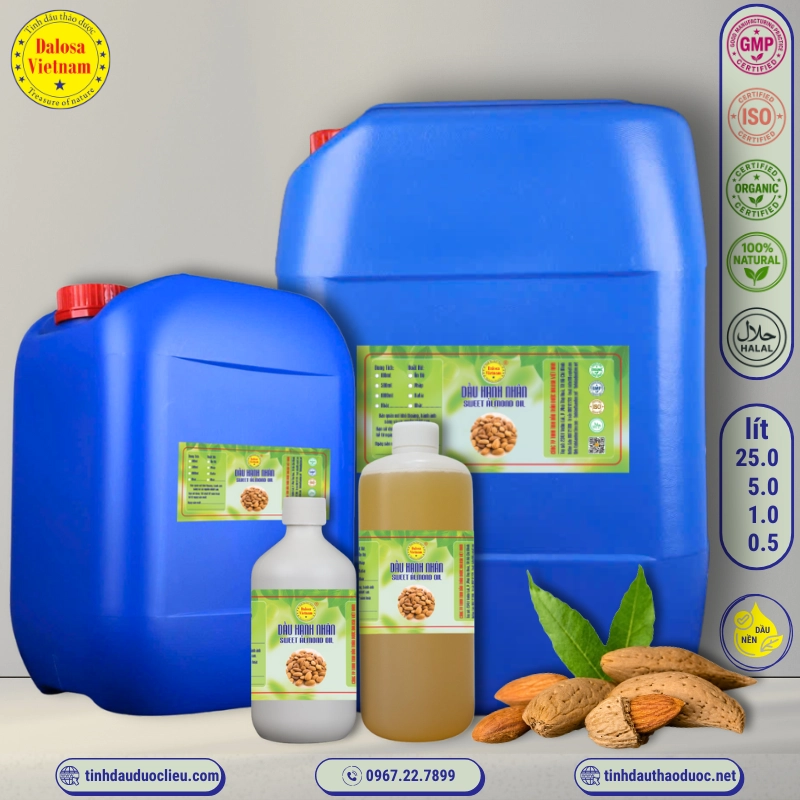 Dầu Hạnh Nhân (Sweet Almond Oil) là một trong những loại dầu nền phổ biến và quý giá, được chiết xuất từ hạt của cây hạnh nhân (Prunus dulcis). Với hàm lượng dinh dưỡng cao, dầu hạnh nhân không chỉ mang lại nhiều lợi ích cho sức khỏe mà còn được sử dụng rộng rãi trong các sản phẩm làm đẹp và chăm sóc sức khỏe.