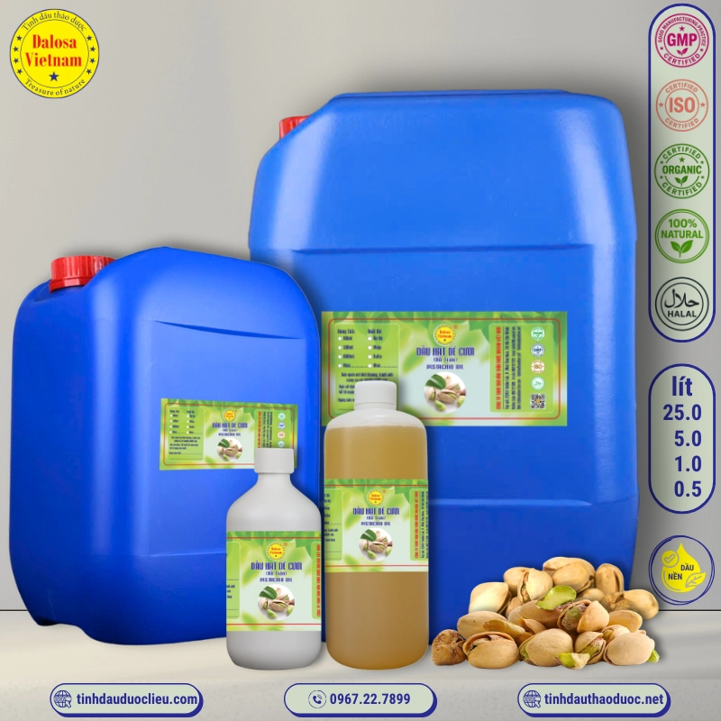 Công ty TNHH Tinh Dầu Thảo Dược Dalosa Việt Nam tự hào cung cấp Dầu Hạt Dẻ Cười – Pistachio Oil chất lượng cao, giúp khách hàng cải thiện sức khỏe và chăm sóc sắc đẹp một cách tự nhiên và hiệu quả.